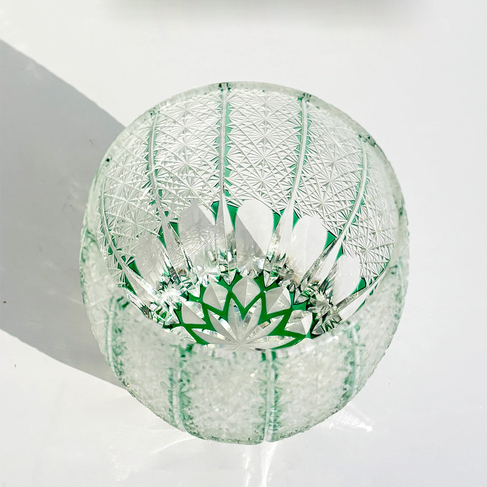 Hand-cut in the Edo Kiriko tradition, this crystal glass features a gently curved form with starburst facets covering the surface. Crafted from high-transparency crystal with precise cutting and polishing, it is suitable for display, collection, gifting, or enjoying fine spirits. Packaged in a protective gift box for preservation and presentation.